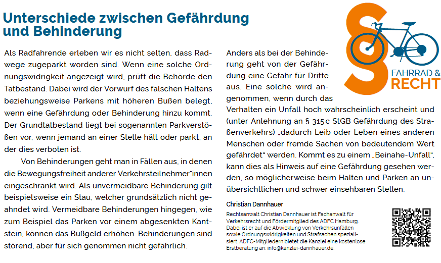 Unterschiede zwischen Gefährdung und Behinderung aus der RadCity Ausgabe 02/25 von Christian Dannhauer